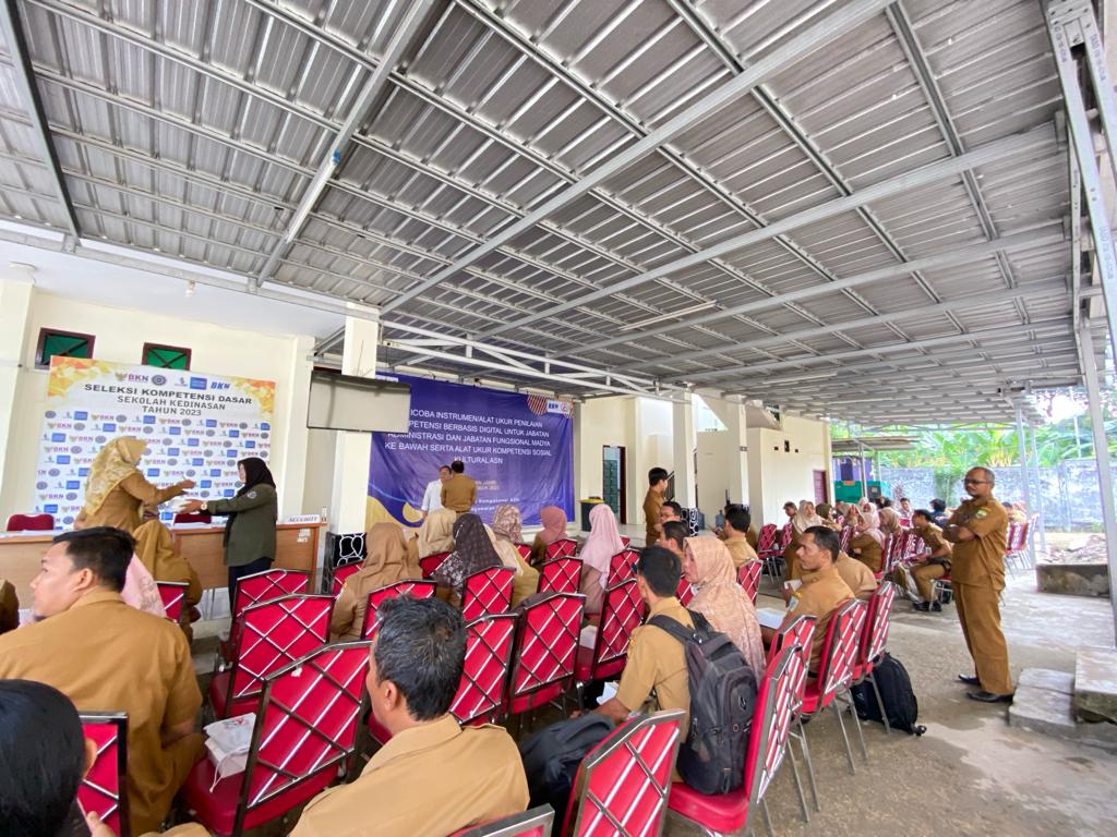 Selasa, 24 Oktober 2023 lalu Unit Penyelenggara Seleksi Calon dan Penilaian Kompetensi Pegawai Aparatur Sipil Negara Jambi (UPT BKN Jambi) bersama Pusat Penilaian Kompetensi (Puspenkom) ASN Badan Kepegawaian Negara melaksanakan Uji Coba Alat Ukur Penilaian Potensi dan Kompetensi ASN untuk Jabatan Administrator, Jabatan Pengawas, dan Jabatan Fungsional Madya ke Bawah. Uji Coba Alat ukur ini diikuti oleh 93 orang PNS dari 100 undangan peserta.